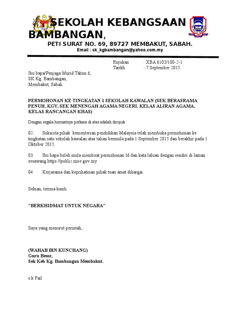 Pdf Permohonan Sekolah Kawalan Ku Rushidi Ku Ahmad Academia Edu